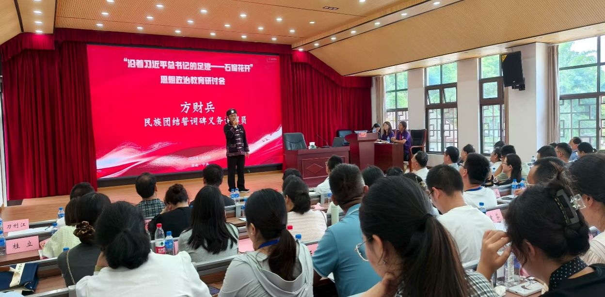 本站消息 9月20日,为深入学习贯彻习近平总书记给普洱民族团结誓词碑盟誓代表后代的回信精神、习近平总书记在全国民族团结进步表彰大会上的重要讲话和考察云南重要讲话精神,进一步研讨铸牢中华民族共同体意识深度融入学校思政教育的方式和路径,由云南农业大学牵头的“沿着习近平总书记的足迹——石榴花开”思想政治教育研讨会在宁洱县磨黑中学报告厅举办。中国人民大学、中国农业大学、云南农业大学、云南民族大学、磨黑中学、云南省高校思政课“手拉手”共建第四组和第九组成员单位等省内外20多所高校和相关中小学的100余名师生参加此次研讨会。