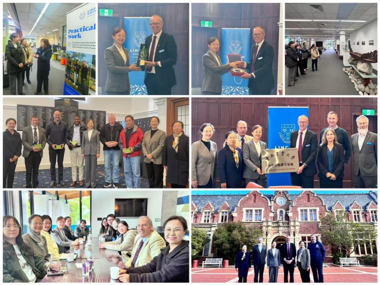 在新西兰林肯大学访问期间,代表团与该校校长格兰特·爱德华(Grant Edwards)、教务长查德·休伊特(Chad Hewitt)及校方高层举行会谈,3场会谈交流就现有合作项目开展深入探讨,并达成两校将于2025年底签订两校合作建设联合学院协议的共识。副校长张慧向林肯大学颁发“云南农业大学海外实践教学基地”牌匾。代表团还与学校合作办学项目第四年在林肯大学攻读学位的本科学生及校友代表进行座谈,了解学生的学校情况以及毕业生在当地就业和升学的情况。
