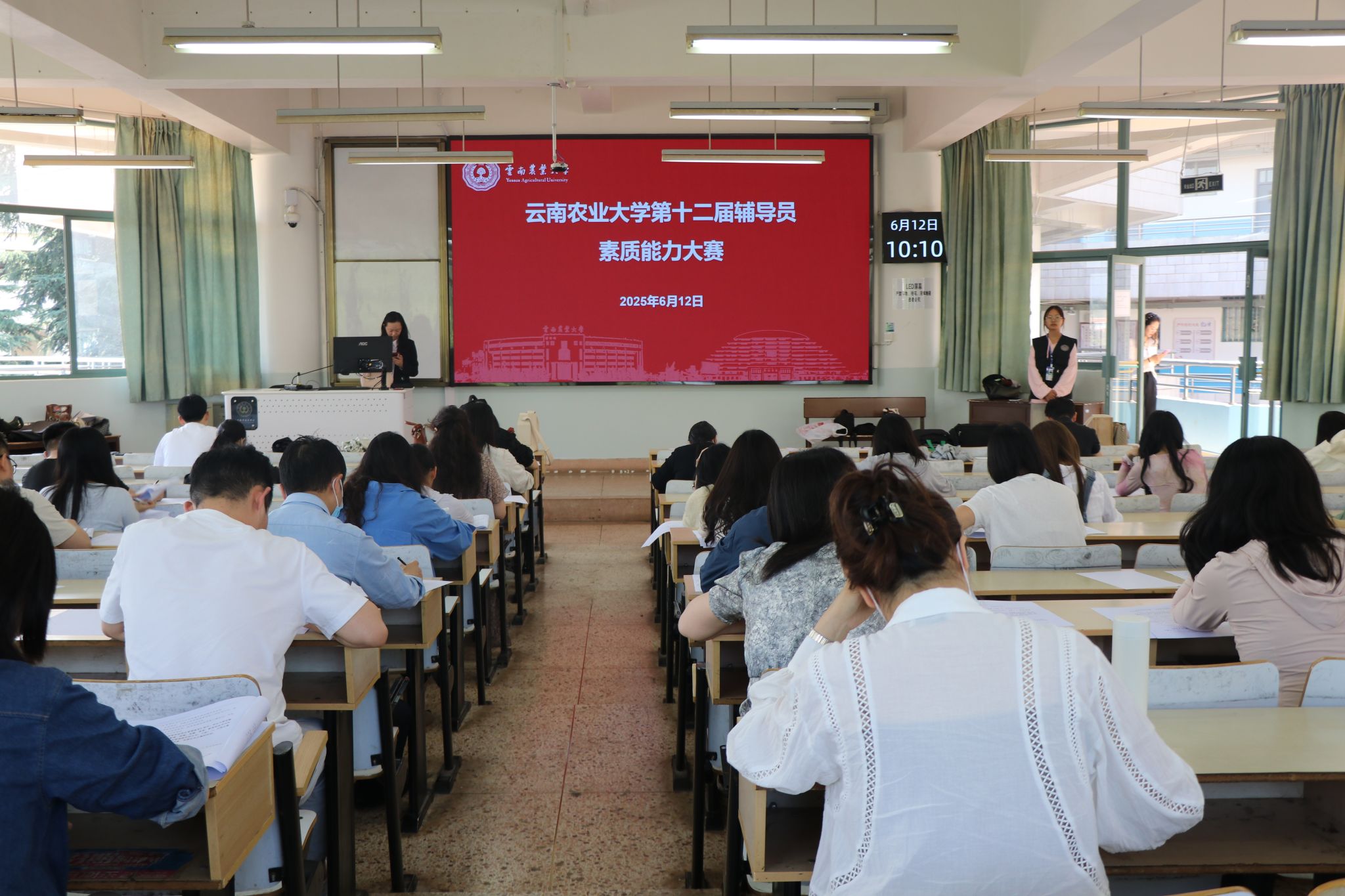 本次大赛设置初赛和决赛两个阶段,初赛于 6 月 12 日以闭卷笔试形式开展,重点考察辅导员理论知识水平,全校全体专职辅导员踊跃参赛,最终 22名选手晋级决赛。决赛聚焦辅导员核心能力提升,设置案例研讨和谈心谈话两个环节。