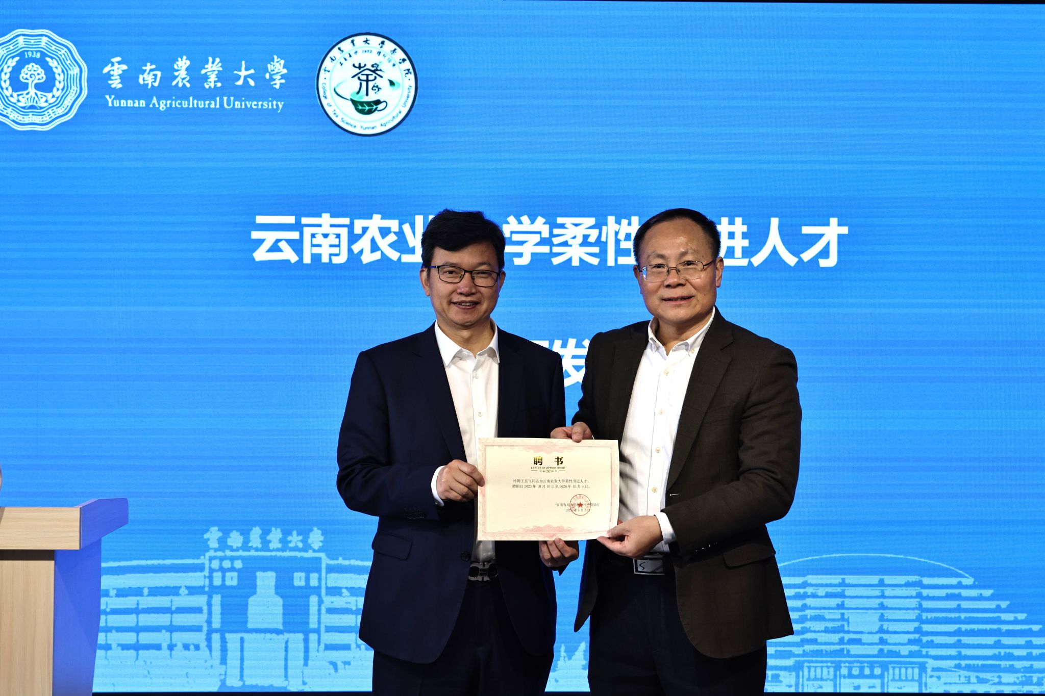 报告会尾声,现场举行了简约而隆重的敦聘仪式。在全体与会师生的共同见证下,校长李永和教授亲自为王岳飞教授颁发聘书,正式聘任王岳飞教授为学校“柔性引进人才”。