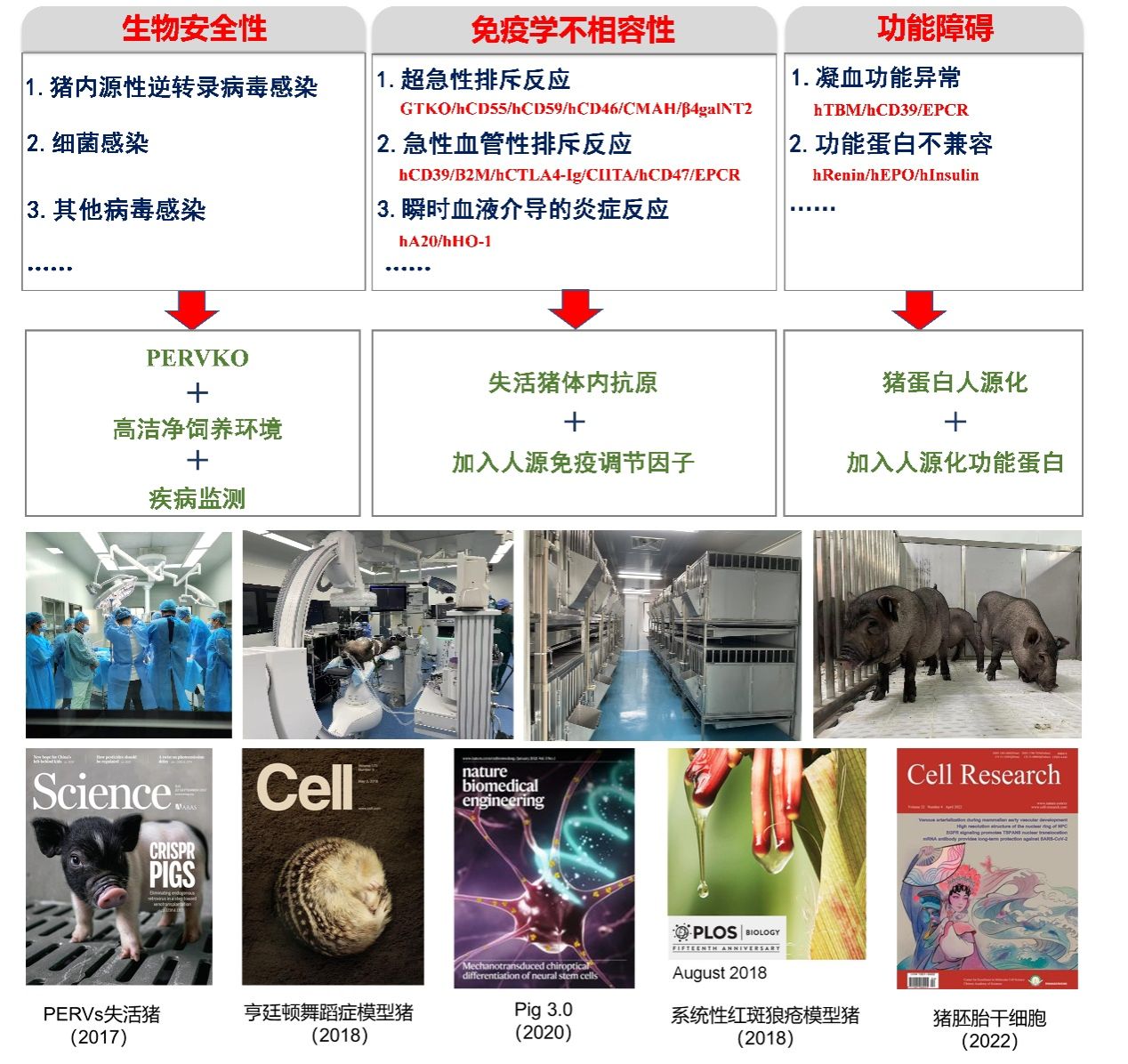 异种器官移植供体及小型猪人类疾病模型团队聚焦医用小型猪供体器官异种移植面临的免疫排斥、凝血功能紊乱及跨物种生物安全性三大核心技术瓶颈,系统攻关并取得重大突破,在多基因编辑与克隆猪制备、异种肝移植临床转化等方面达到国际前沿水平,建立起从基础研究、临床前研究到临床应用的完整转化体系。团队先后承担国家重点研发计划项目等国家级和省部级项目40余项,在国际一流学术刊物发表论文150余篇,授权发明专利13项,制订云南省地方标准2部,获得省技术发明一等奖1项。相关技术获“2030癌症、心脑血管、呼吸和代谢疾病防治研究”国家科技重大专项支持,为我国异种器官移植领域发展作出重要贡献。