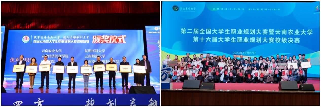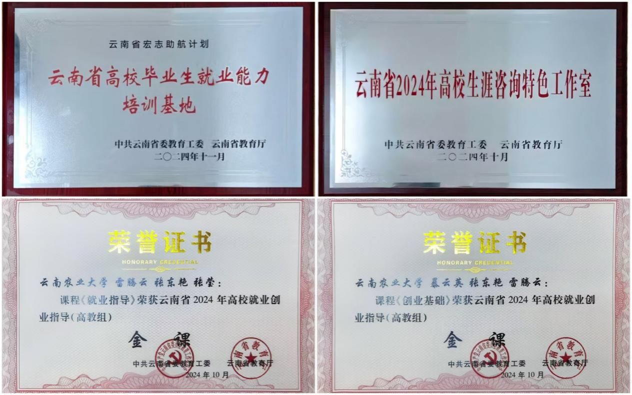 构建贯穿大学四年的“4个1”职业发展教育体系。为新生发放1本《生涯启航》手册,引导新生开始自我探索生涯之路;开设1系列职业发展课程省级金课,外引内培打造60余名专业授课师资队伍;运用好1个省级特色“生涯启航”咨询工作室,持续为学生提供个性化服务;连续19年每年组织举办1场职规类赛事,实现以赛促教、以赛促学、以赛促就。职就创3门必修课全部入选云南省就业创业指导金课,《就业指导》获批校级一流本科课程。延伸课堂教学广度,带领学生走出校园,走进企业、走进园区、走近社会,着力提升求职就业实战能力。建成“云农就创”云就业平台和“生涯启航”咨询服务平台。组织线上线下专场招聘宣讲活动2355场,参与招聘人数60300余人;举办省级农业类毕业生专场招聘会等中大型活动37场,到校招聘单位2562家,提供岗位185400个;开展“书记校长访企拓岗促就业专项行动”,走访企业1428家,拓展就业岗位14096个、实习岗位4018个;举办“留滇有我 就在云南”等就业育人系列活动50余场,开展“农梦飞扬 青春启航”职业生涯体验周,参与学生1.3万余人次,就业能力提升分类辅导培训覆盖8850名毕业生。