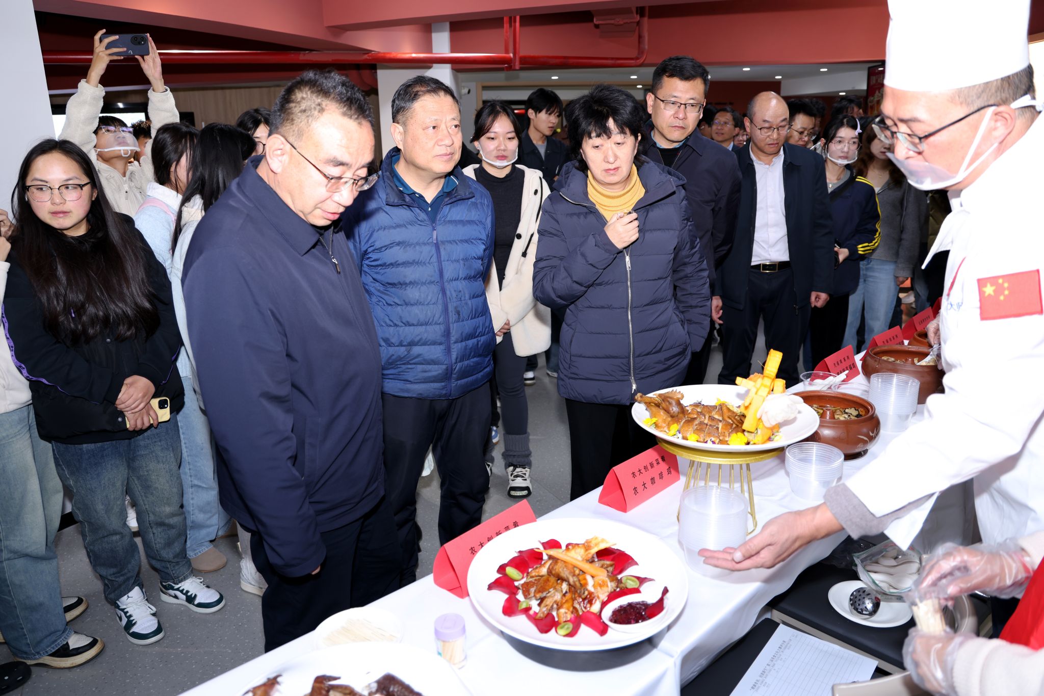 师生们还立足学校科研成果与云南特色资源,将学校自主培育的云岭土鸡与云南咖啡、生态菌菇等特色食材巧妙碰撞,运用汽锅烹饪、黄焖爆炒、傣味烧烤等烹饪技巧,坚守食材本味与营养均衡原则的同时,将食材跨界融合与技法创新融入菜品制作,赋予传统美食全新的风味层次,充分彰显了云农学子将专业知识与饮食文化创新相结合的实践能力。