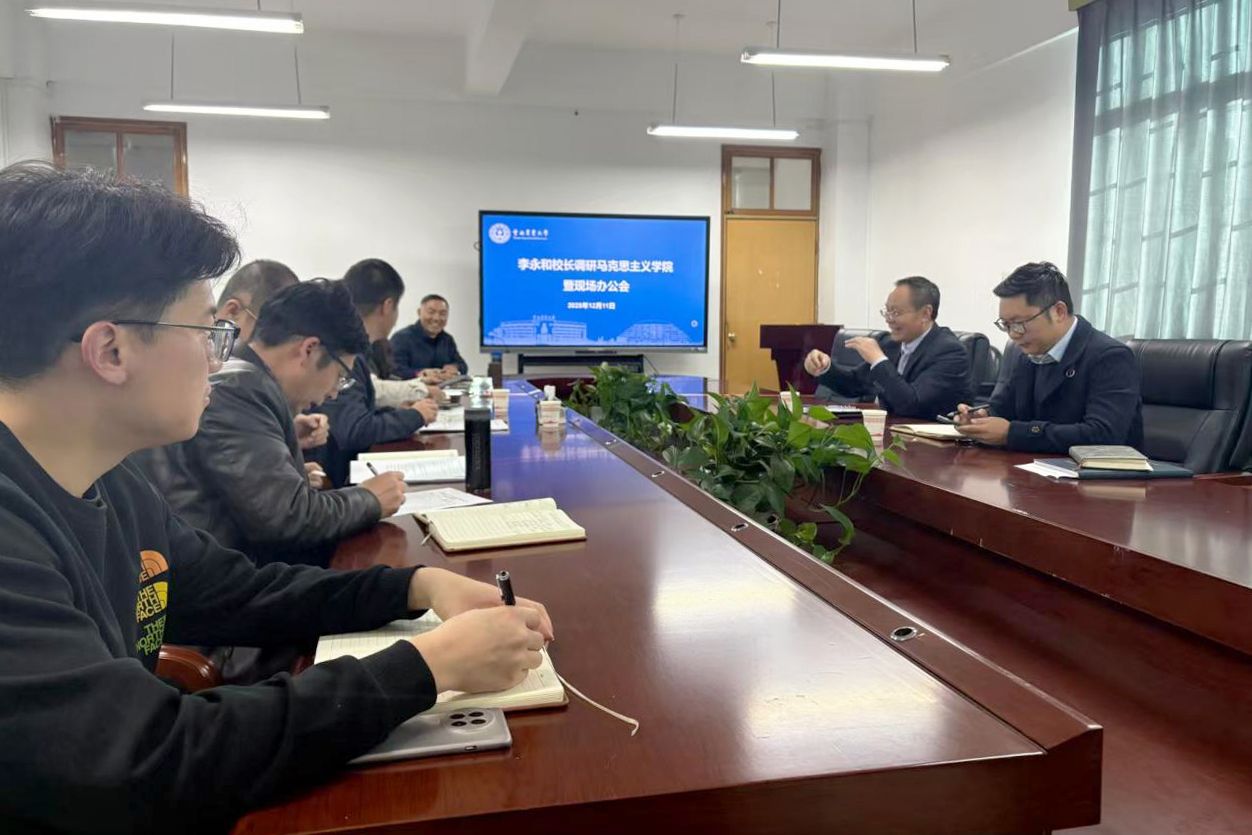 本站消息 12月11日,学校党委副书记、校长李永和到马克思主义学院调研并召开现场办公会。李永和强调,要深入学习贯彻党的二十届四中全会精神,科学谋划学院“十五五”事业发展规划,重点推动马克思主义学院建设、思政课建设、学科建设和人才培养全面提质增效。会议由校党委委员、宣传部部长兼马克思主义学院党委书记严明杰主持。