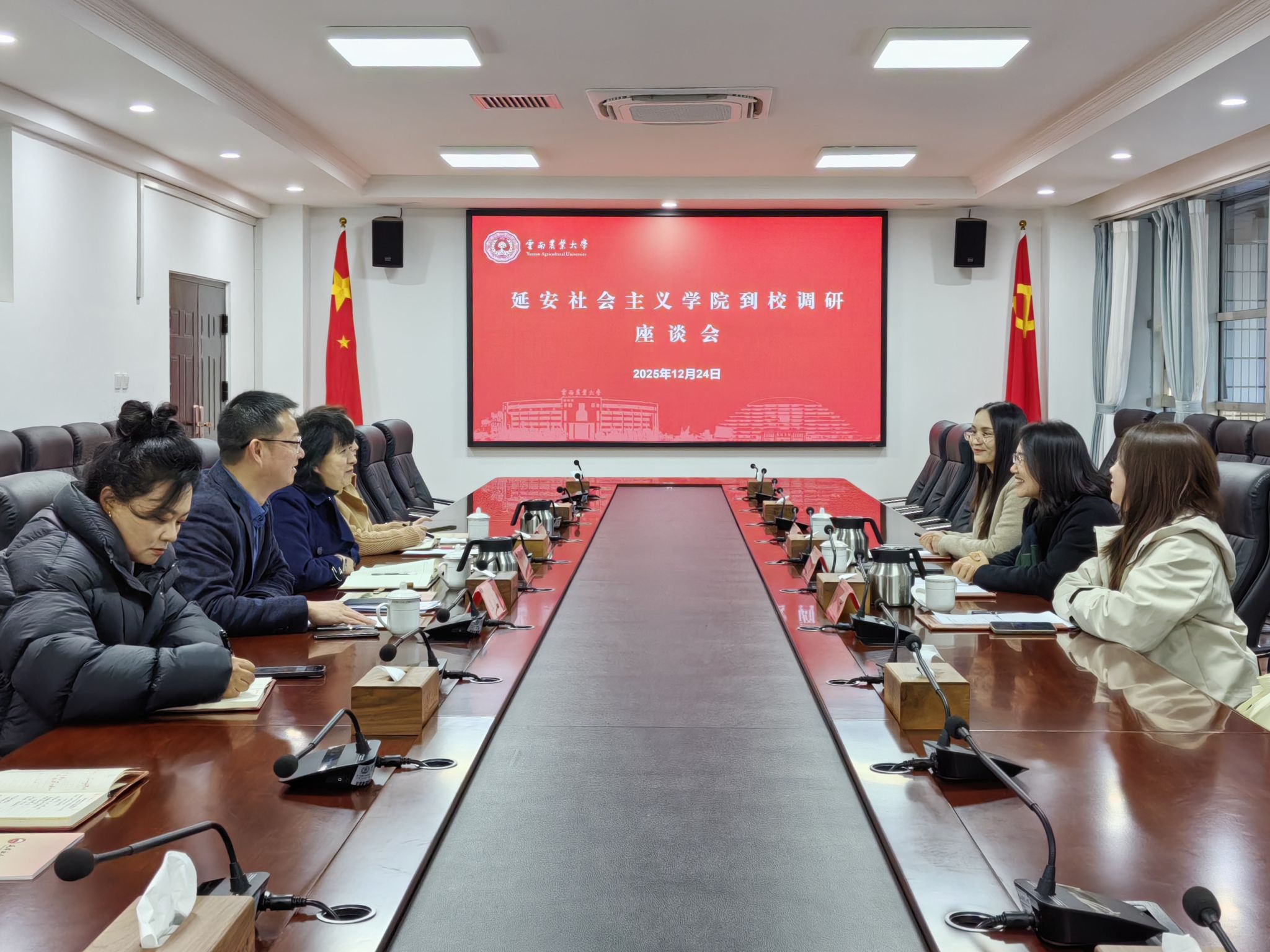 本站消息 12月24日,延安社会主义学院专职副院长李敏一行3人到校调研座谈。校党委副书记徐华出席会议并讲话,座谈会由校党委委员、统战部部长李永能主持,统战部全体人员参加座谈。