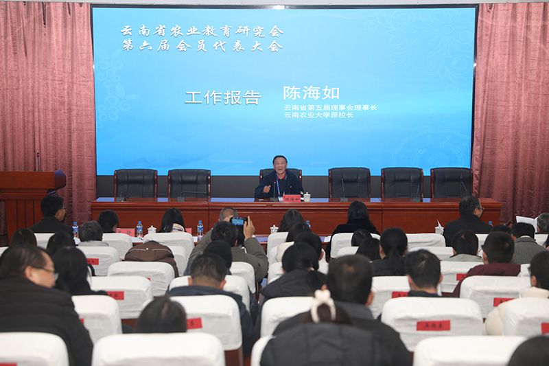 在第六届会员代表大会第一次会议上,云南省第五届理事会理事长、学校原校长陈海如做第五届理事会工作报告,学校继续教育学院招生办主任苏文婧做第五届理事会财务报告。工作人员宣读了云南省农业教育研究会修改章程的说明、本会会费标准、第六届会员代表大会选举办法,并全体通过。