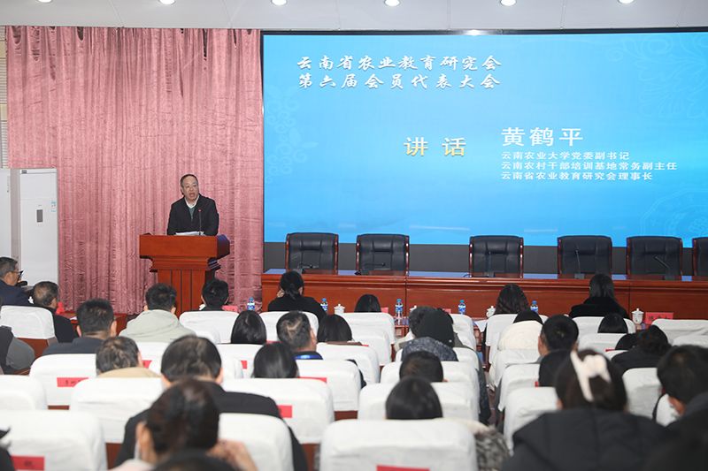 黄鹤平在大会上向长期以来关心支持我省农业教育事业和研究会建设发展的云南省民政厅、云南省社会科学界联合会以及各位领导、专家学者、企业家朋友们致以最诚挚的敬意,向大会的胜利召开表示最热烈的祝贺。