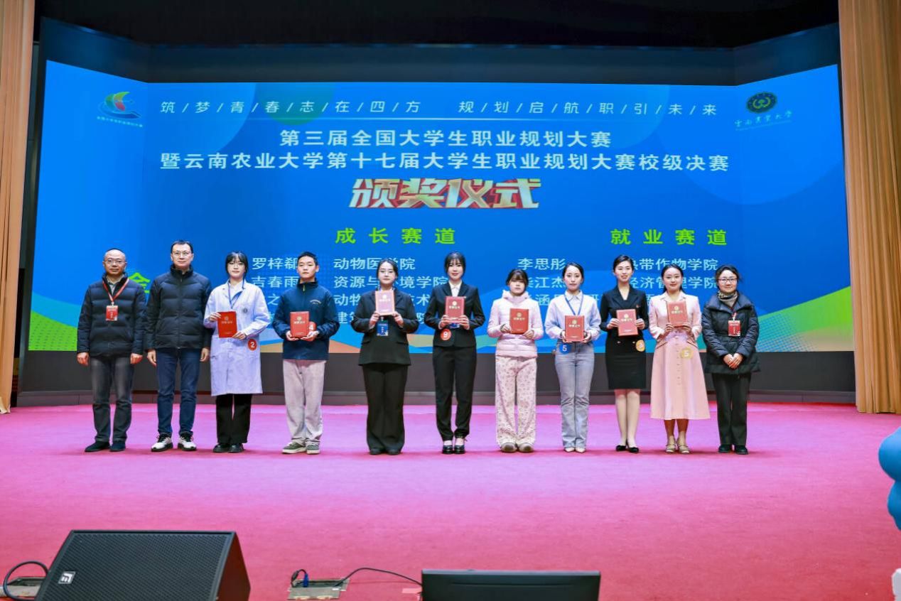 经过激烈角逐,各赛道及专项奖项逐一揭晓:动物医学院罗梓郗等4人获成长赛道金奖,理学院陈翼航等6人获成长赛道银奖;热带作物学院李思彤等2人获就业赛道本科生组金奖,外语学院肖涵丹等2人获就业赛道研究生组金奖;热带作物学院田亚楠等3人获就业赛道本科生组银奖,食品科学技术学院李泠等3人获就业赛道研究生组金奖;8名教师获优秀指导教师奖,6个学院获优秀组织奖。