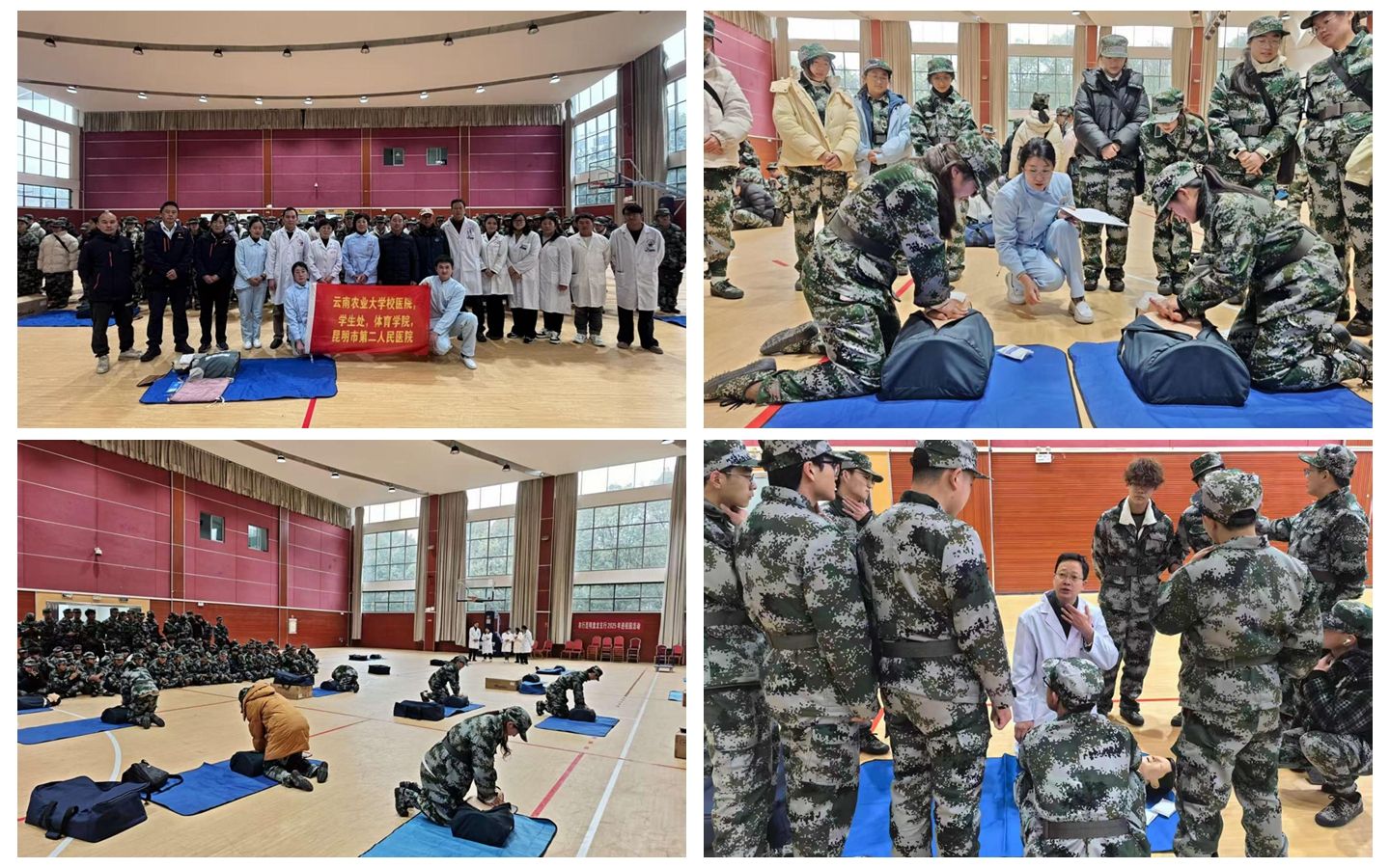 此次多部门联合培训,是学校深化国防教育与生命安全教育融合的重要举措,既发挥了校医院的组织协调作用、昆明市第二人民医院的专业医疗优势,也依托学生处、武装部、体育学院的军训组织资源,形成了协同育人的强大合力。培训不仅为2025级新生军训培养了一批合格的急救技能骨干,更在校园内传递了“人人学急救、急救为人人”的安全理念,为构建平安校园注入了坚实力量。