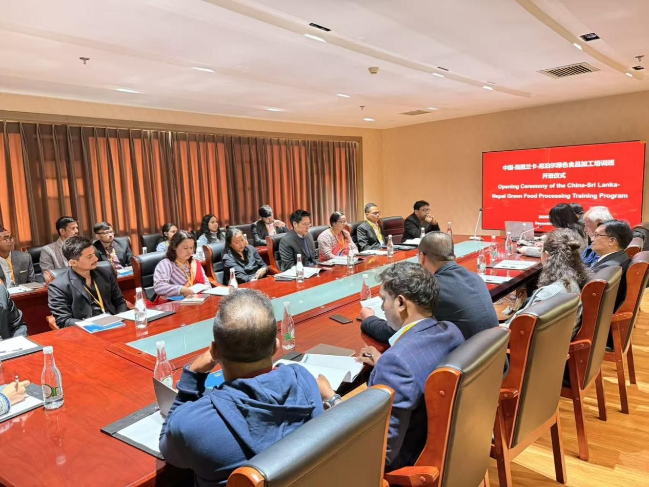 本站消息 12月1日至19日,由食品科学技术学院主办的中国-斯里兰卡-尼泊尔绿色食品加工培训班在学校举行。培训班开幕式上,副校长魏红江教授致辞,对外合作交流处朱耀顺处长、国际学院路遥副院长、食品科学技术学院方崇业副院长及培训相关负责工作人员出席活动。此次培训汇聚了斯里兰卡、尼泊尔、孟加拉国和泰国的20名农业食品领域专业技术人员,深入云南高原特色农业及精深加工一线开展实践教学,进一步推动区域农业食品领域的交流合作与能力提升。