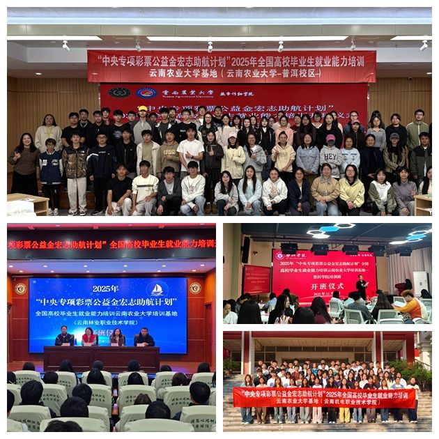 近日,学校作为“中央专项彩票公益金宏志助航计划”全国高校毕业生就业能力培训基地之一,至此已顺利完成2025年度各项培训任务。2025年,学校共承担培训任务650人,培训范围覆盖云南农业大学、西南林业大学、云南机电职业技术学院、云南农业职业技术学院、云南林业职业技术学院、普洱学院、西双版纳职业技术学院和云南科技信息职业学院等8所高校。全年分两期开展,共开设10个培训班,吸引了800余名毕业生踊跃报名,720名学员参加线下培训课程集中学习,693名学员顺利获得教育部统一颁发的结业证书,超额完成年度培训目标。