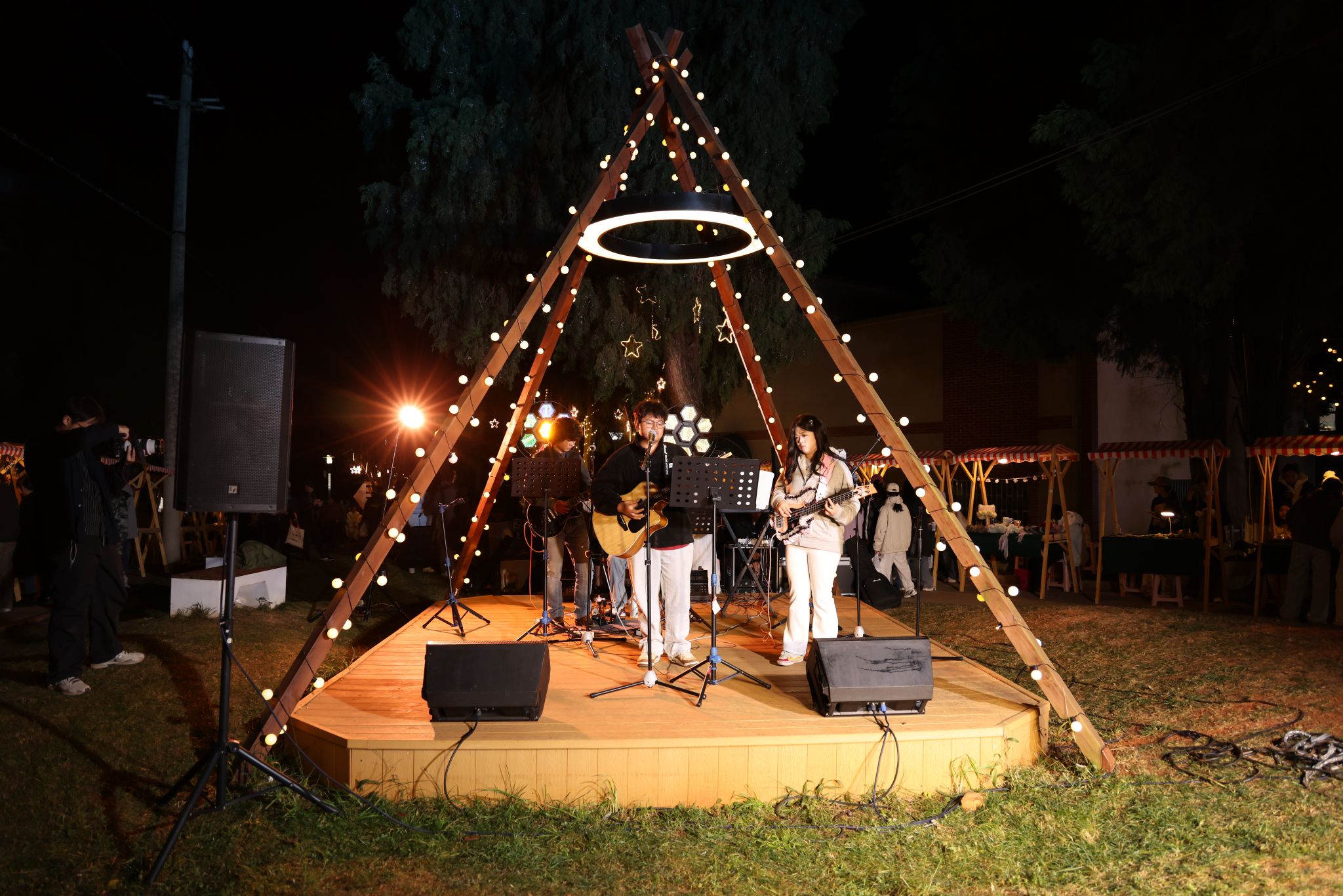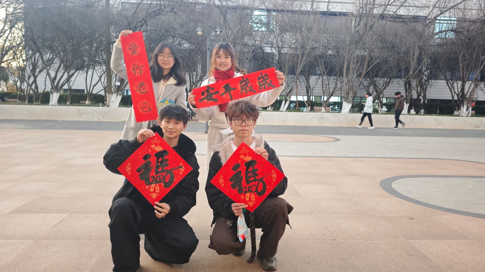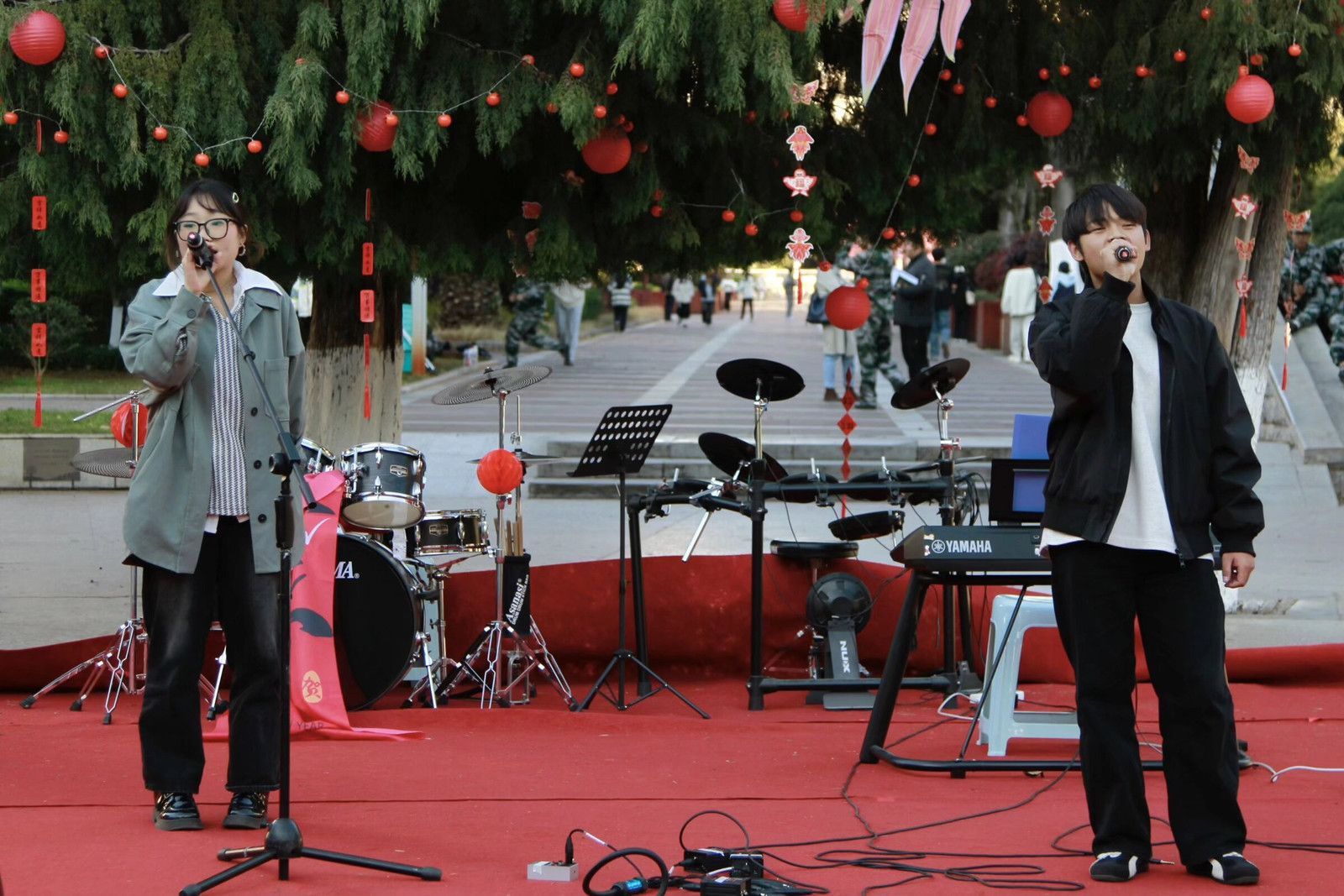 12月30日下午,“古韵新潮·艺启华章”快闪活动在至诚楼后圆形小广场惊喜启幕。调香、漆扇绘制、对联书写、干花制作等传统文化体验吸引师生驻足参与;声乐队、民乐队及校园乐队的即兴表演《烦恼歌》《黔中赋》等曲目,将传统韵味与青春活力交织成冬日里一抹动人的风景,让师生在互动体验中感受文化传承与创新表达的碰撞。