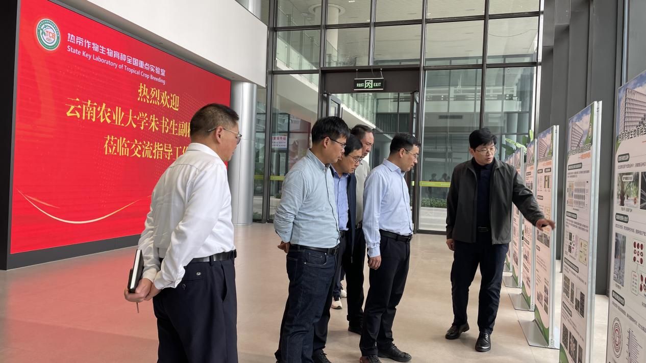 考察期间,中国热科院热带生物技术研究所所长郝朝运热烈欢迎代表团一行。郝朝运系统介绍了热带作物生物育种全国重点实验室的科研布局、发展规划与合作意向。朱书生一行实地调研了该实验室的科研平台,详细了解其在甘蔗、香蕉、木薯、天然橡胶等热带作物生物育种关键技术研发与种质资源汇集方面取得的进展。