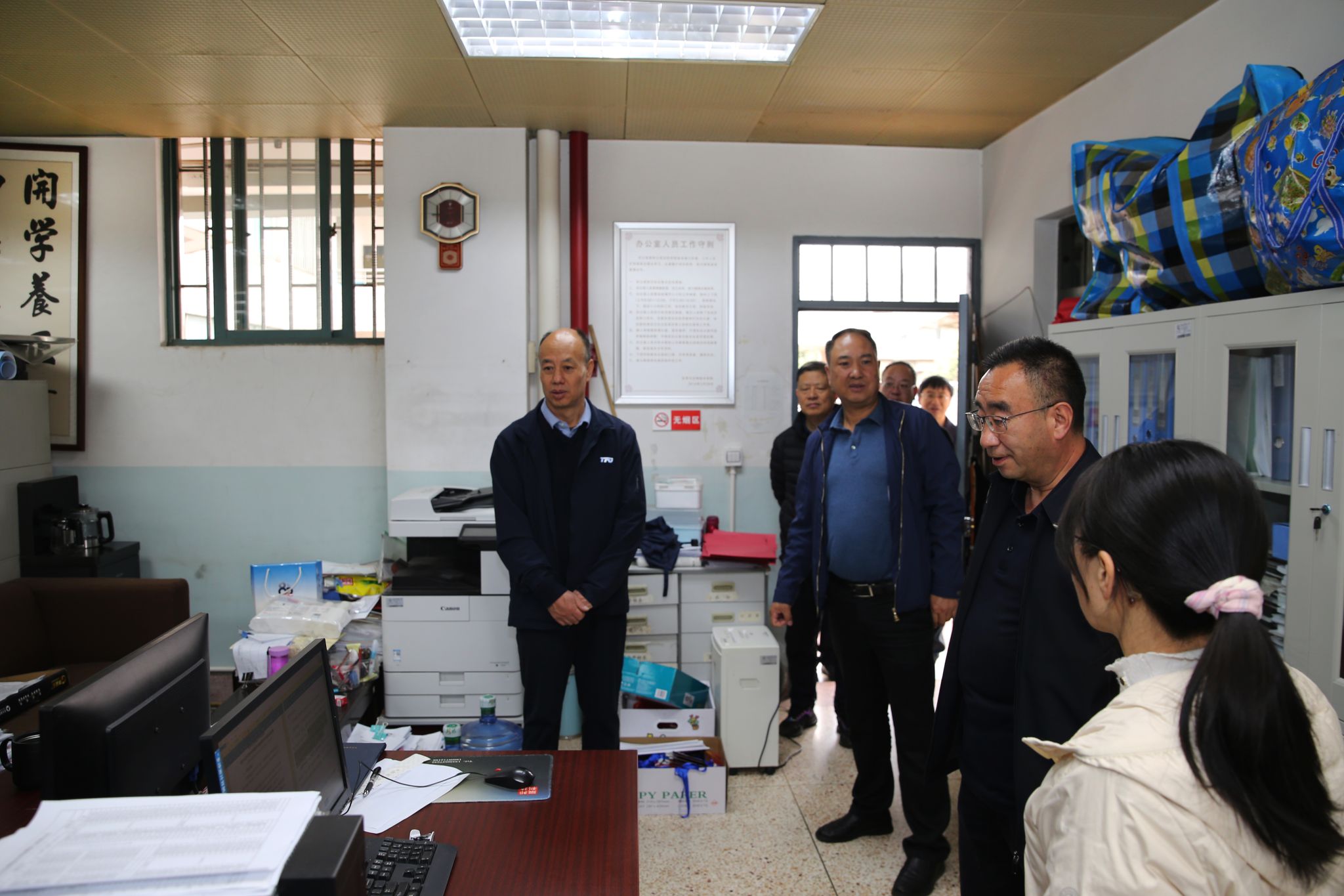 走访中,校领导与教职工们亲切交流,关切询问大家的假期生活情况,详细了解各单位新学期工作筹备进展,认真听取各部门、学院负责人关于教学安排、招生就业、科研工作、社会服务、对外合作、校园安全等重点工作的汇报,全面掌握开学准备工作推进中的实际情况与需求。